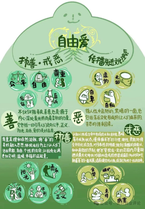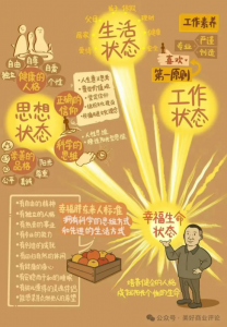 我刚才在展板上看到生活状态,生活状态在右上角,对,就是你的爱情,你怎么对待你的爱情婚姻,你怎么居家,你怎么对待父母,你怎么对待孩子,你怎么去安排自己休假,你怎么理财,你怎么健康,你怎么注重自己的安全,他觉得这八个部分就是胖东来人,就是你无论在什么样的公司里边,你自己的8小时生活应该是可以往一个好的方向做引导的,所以我觉得在这件事情上面他今天会非常的慈悲和博爱。